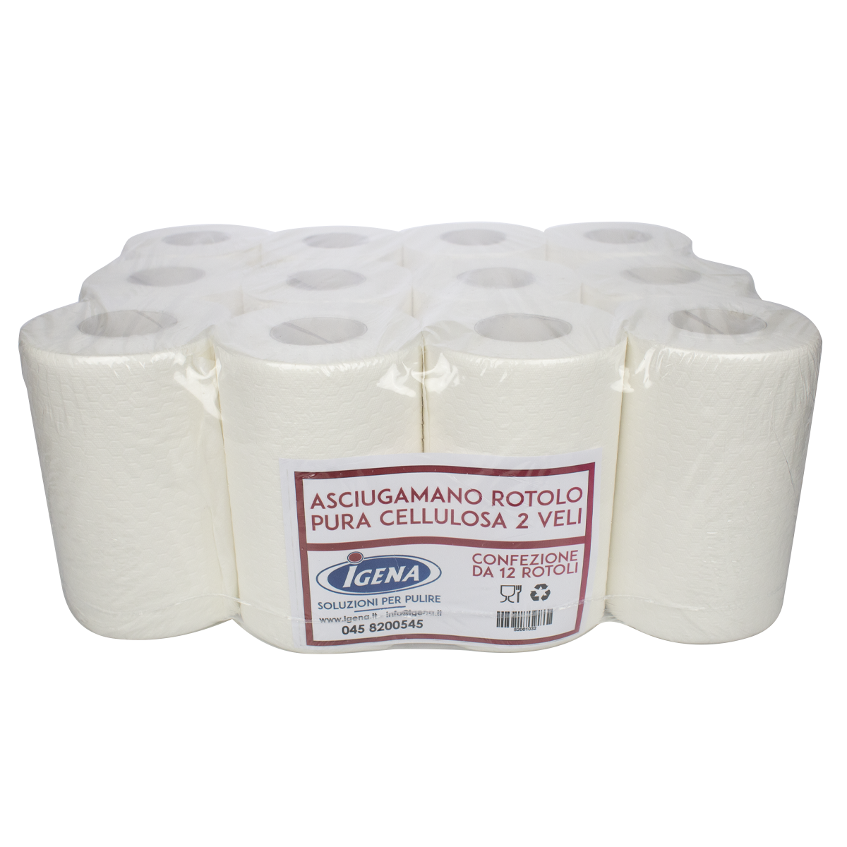 Asciugamano in rotolo, pura cellulosa, 2 veli. 55 mt.
