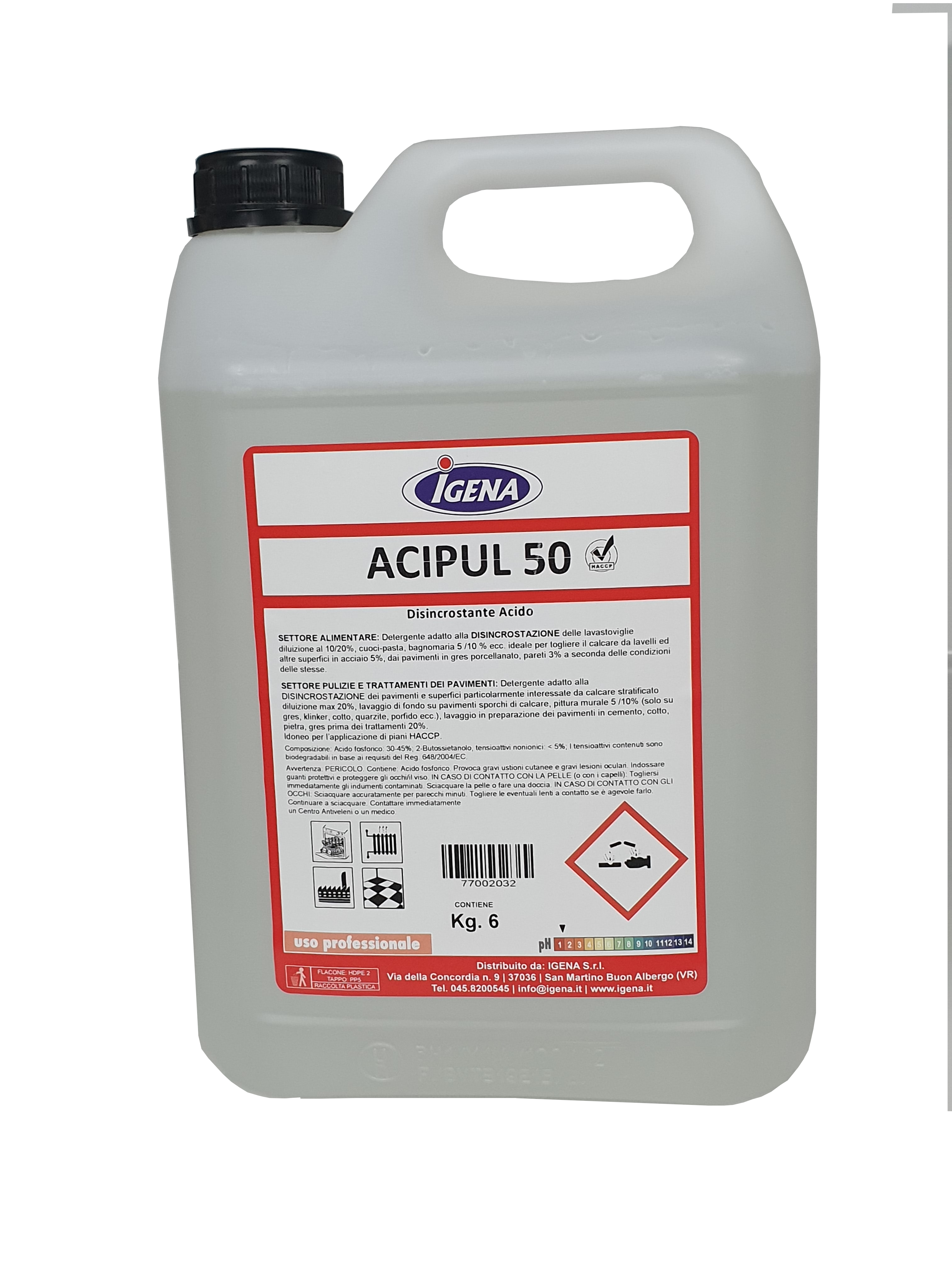 Detergente disincrostante forte a bassa schiuma per pavimenti in cotto, cemento e pietre resistenti agli acidi.