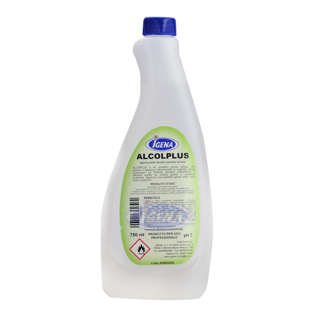 - Spruzzare ALCOLPLUS sulle superfici da detergere