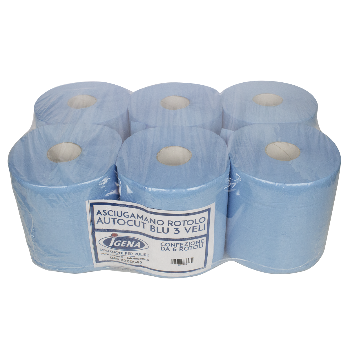Asciugamani rotolo blu per distributore autocut a taglio automatico, 3 veli