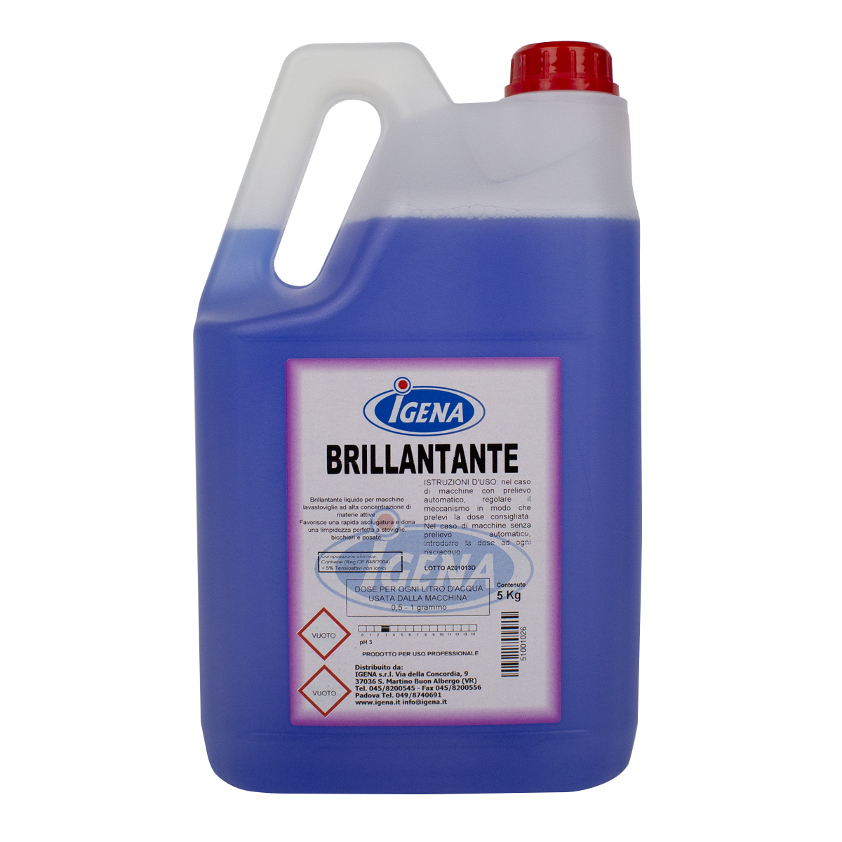 Additivo brillantante concentrato a pH acido per il risciacquo finale delle stoviglie. Indicato per acque dure (25-30 °F). Assicura grazie alla presenza di acido citrico l'assenza di residui salini sulle stoviglie. Usato regolarmente rallenta la formazione del calcare.