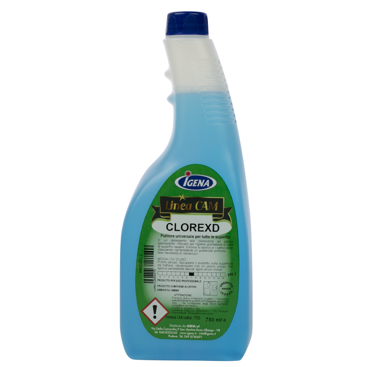 Detergente alla clorexidina ad azione igienizzante. Indicato per l'igiene giornaliera di tutte le superfici lavabili. Elimina lo sporco e i cattivi odori rilasciando nell'ambiente un gradevole profumo. Non necessita di risciacquo.