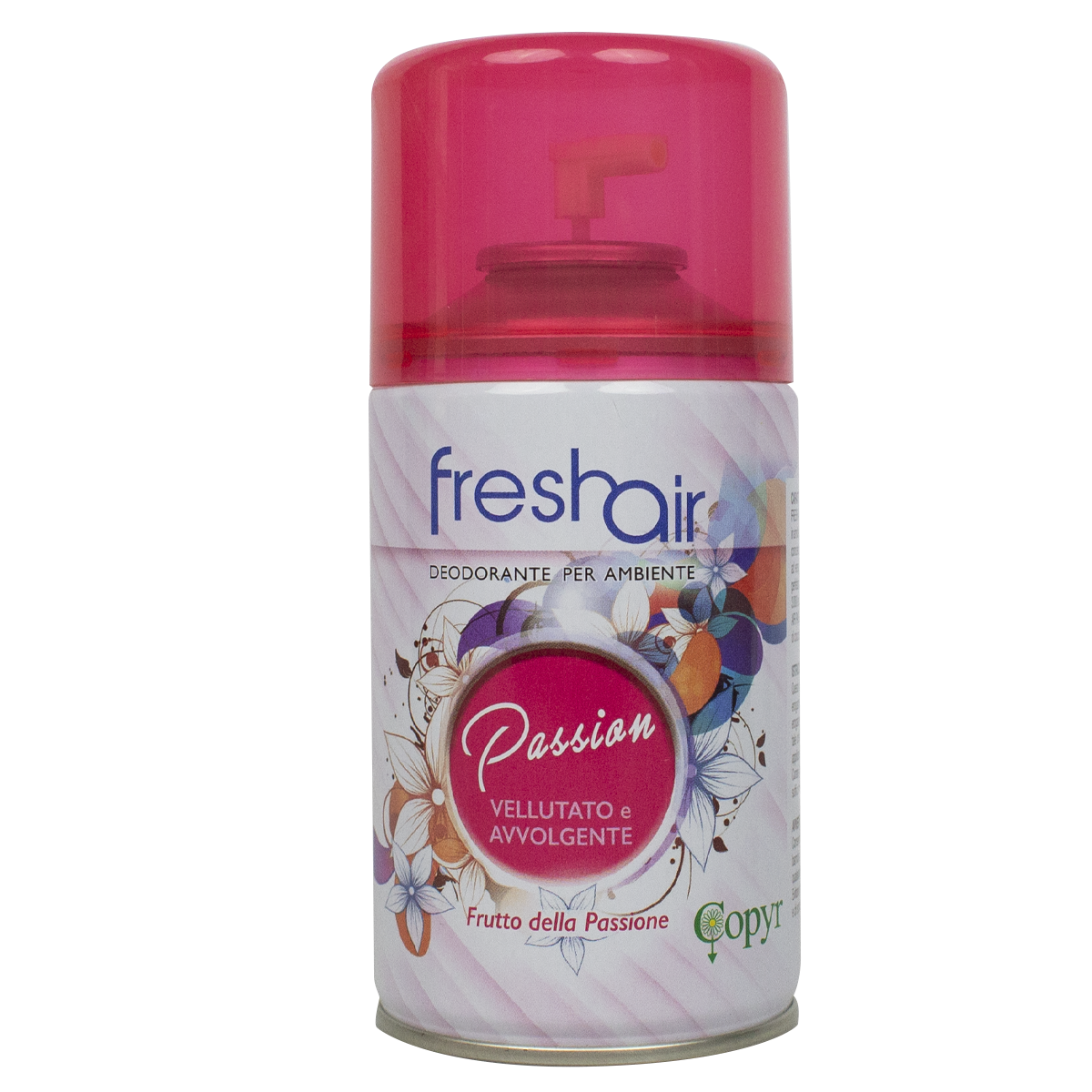 Deodorante studiato per l’impiego ambienti interni, ad uso professionale. Grazie alla elevata concentrazione di essenze pregiate ed alla speciale valvola ad erogazione dosata, FRESH AIR PASSION deodora perfettamente ambienti fino a 100 m3. La bombola garantisce 3.000 erogazioni circa. Fatti avvolgere dalla fragranza FRESH AIR PASSION FRUTTO DELLA PASSIONE e regalati momenti di coccole nei tuoi ambienti preferiti.
