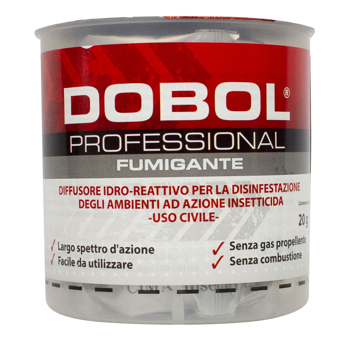 DOBOL è un insetticida basato su una nuova tecnologia che permette di disinfestare totalmente e a lungo ambienti chiusi. La sua azione avviene per idroreazione e comporta i seguenti vantaggi: FORTE POTERE PENETRANTE: la fumigazione genera un intenso fumo