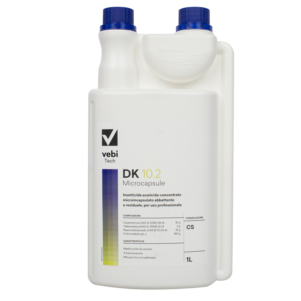 DK 10.2 è un insetticida concentrato microincapsulato in base acquosa, a largo spettro d’azione e lunga persistenza. Non contiene solventi alifatici, aromatici e clorurati.