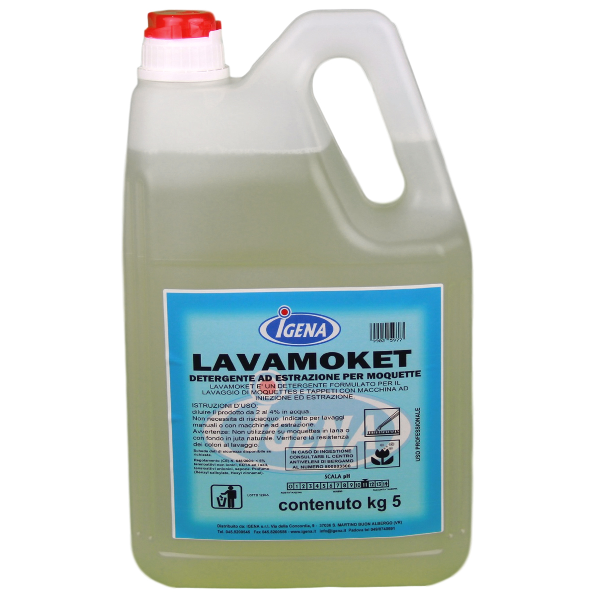 Detergente liquido profumato, a bassa formazione di schiuma, ideale per il lavaggio sia con SISTEMA AD ESTRAZIONE sia manualmente (con il sistema a risciacquo) di tappeti, moquette e rivestimenti tessili resistenti all’acqua. IGENA LAVAMOKET grazie ai suoi particolari tensioattivi e ai saponi agisce con delicatezza sui tessuti rimuovendo ogni tipo di sporco. IGENA LAVAMOKET lascia una gradevole e duratura nota profumata.
