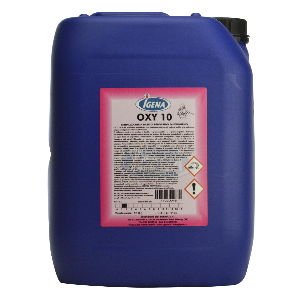OXY 10 è un prodotto non schiumogeno a base di perossido d’idrogeno ad alta concentrazione (130 volumi), formulato appositamente per la pulizia e l’igienizzazione di locali in genere, uffici, mezzi di trasporto, marciapiedi, ecc. E’ indicato anche per la rigenerazione di apparati filtranti, cartucce di microfiltrazione e membrane di ultrafiltrazione e per l’igienizzazione di impianti C.I.P., tubazioni, tanks, pompe. Il prodotto può essere utilizzato nebulizzando direttamente sulle superfici o tramite atomizzatori, che vaporizzano il prodotto. La sua azione ossidante contro lo sporco organico garantisce un igiene profonda per ogni tipo di superficie. OXY 10 inoltre non contiene cloro, pertanto non è corrosivo su acciaio inox e alluminio e può essere usato su plastiche e resine epossidiche. Per ottenere il miglior risultato è sempre consigliato un preventivo sgrassaggio delle superfici.