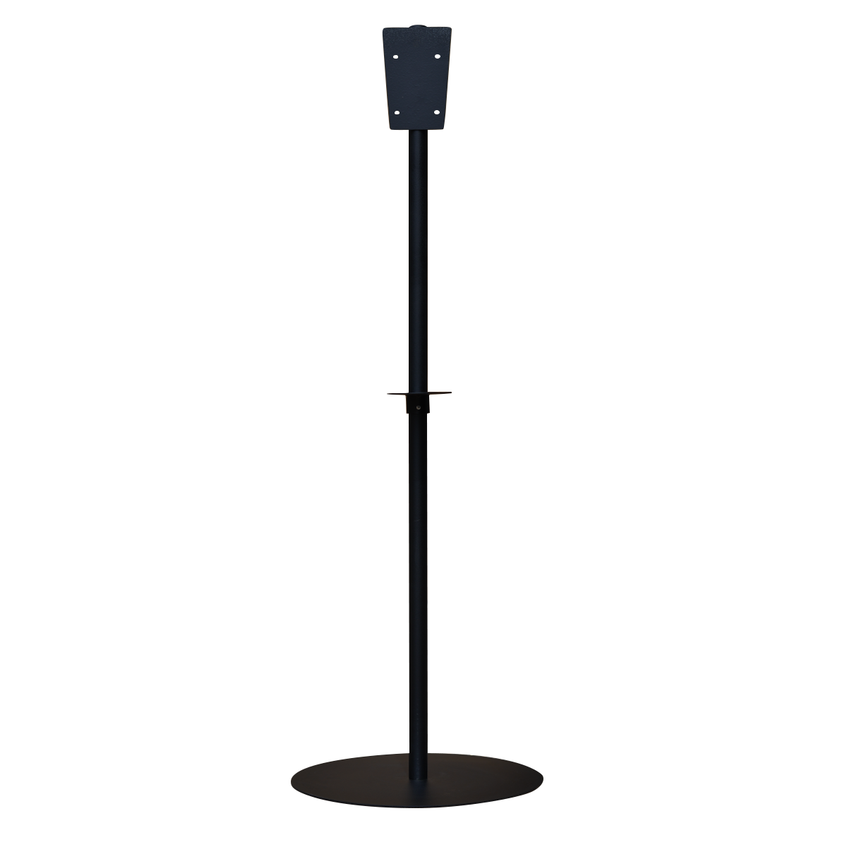 Piantana universale in acciaio verniciato nero opaco, per l'installazione di qualsiasi dispenser erogatore.