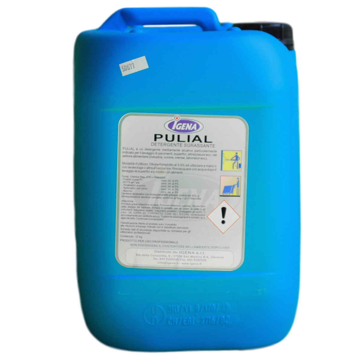 PULIAL è un detergente mediamente alcalino particolarmente indicato per il lavaggio di pavimenti, superfici, attrezzature, ecc. nel settore alimentare (industria, cucine, mense, laboratori, ecc.).