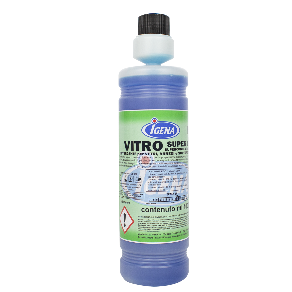 - 1 dose (25ml) in 500 ml d'acqua per pulire vetri, specchi, cristalli;
